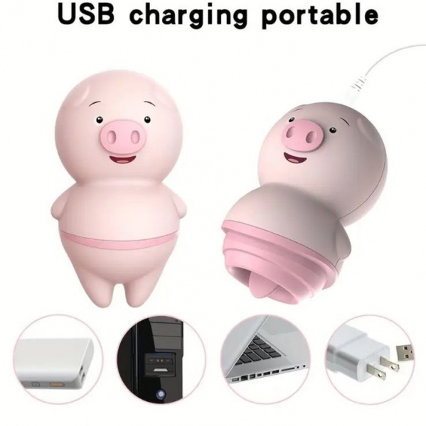 Cerdito lamedor: resistente al agua , 10 potentes niveles de vibración, carga usb silicona grado Médico
